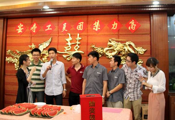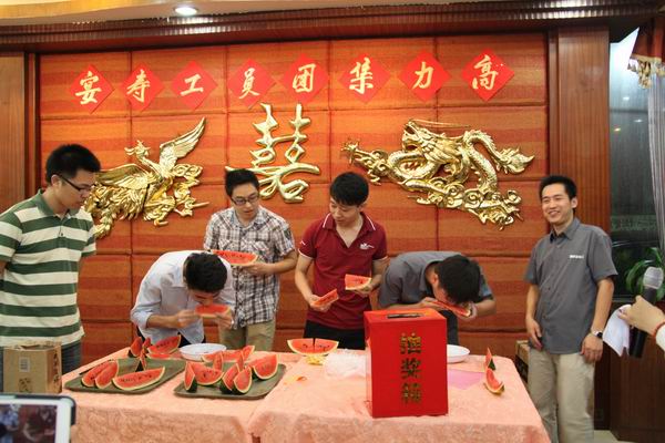 定期为员工举办生日会,让大家欢聚一堂共庆生辰,是高力集团的传统。2013年上半年的员工生日会在6月14日晚举行。当晚,活动气氛格外温馨,大家的热情也相当高涨。 晚上七点,生日会正式开始。第一个环节便是众人期待的抽奖,气氛马上被带动起来。在丰厚奖品和美味佳肴的伴随下,同事们有说有笑,谈天说地。紧接着就是刺激好玩的游戏环节。在“不要吞了我”这个游戏中,为了能够收集更多的西瓜籽,从挑西瓜到吃西瓜,参加的成员紧密合作,各显神通,最后两队之间仅以两颗西瓜籽的微小差距决出胜负,将现场的欢乐气氛推向高潮。 随着各个奖次不断被抽出,大家的热情一浪更推一浪。现场气氛在特等奖的幸运寿星被抽出时再次达到高潮。特等奖获得者上台领奖并发表感言时表示:非常感谢集团在这个特别的时刻给予她这个特别的大奖,高力这个大集体让她切实感受到了家庭般的温暖! 生日会在欢笑声中结束,大家都满载而归。收获的不仅是丰厚的礼品,更是同事间感情的增进和团队凝聚力的增强!