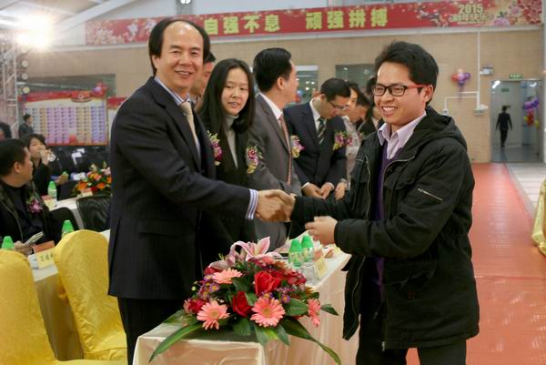 梁总裁在报告中对高力2014年的工作给予了充分肯定,他说:2014年,面对复杂多变的国内外环境,全体高力人上下一心、团结奋进,积极应对复杂严峻的外部形势和不利因素影响,着力抓生产、增效益、拓市场、树品牌、促技改、重创新、强管理、控成本、保安全、优环境,牢牢把握发展大势,奋力抢占市场份额,大力培育创新动力,持续优化管理结构,不断夯实发展基础,各项工作迈上新台阶,继续保持高力集团的良好发展势头。 梁总裁指出,在取得成绩的同时,全体高力人更需要清醒地看到自身存在的问题和不足。为此,梁总裁就2015年的工作提出了几个目标和要求:一、强化市场竞争意识,提高市场营销能力,优化市场销售体系,积极尝试更多新型的营销手段;二、立足企业战略发展的未来竞争需要,切实贯彻科技兴起、科技领先的理念,不断加强自主创新力度,加大科技投入;三、高度重视和切实加强安全生产工作,进一步健全和完善安全管理制度,跟踪督查整改制度,全面加强安全生产培训教育;四、提倡协作精神,加强执行力建设;五、稳步推进集团各项改造项目、工程项目的进程,加快完成各项目的收尾工程,确保各项目可按照原计划交付使用;六、加强企业文化建设,围绕集团发展的战略目标,以创建、提升企业品牌为中心,全力推动企业核心价值理念、体系建设。他呼吁全体高力人携手并肩,团结合作,以高效努力的姿态、崭新的精神面貌、饱满的工作热情迎接未来,努力开创多正、致卓、中南、龙腾、丽致、高力的繁荣鼎盛,共同创造精彩绚丽的人生。 梁总裁精彩的发言,赢得了现场所有高力人的热烈掌声。随后,集团其他相关领导亦相继上台发言,就2014年工作进行总结并对2015工作作出规划。 会议最后是颁奖环节,集团领导为2014年表现优秀的个人及团体颁发荣誉证书与奖金,鼓励大家在新的一年继续保持高昂的奋斗激情,为集团创造更大的价值。为表达集团对优秀个人及团体的衷心敬意,集团领导皆起立与获奖个人及团体奖领奖代表逐一握手致意。