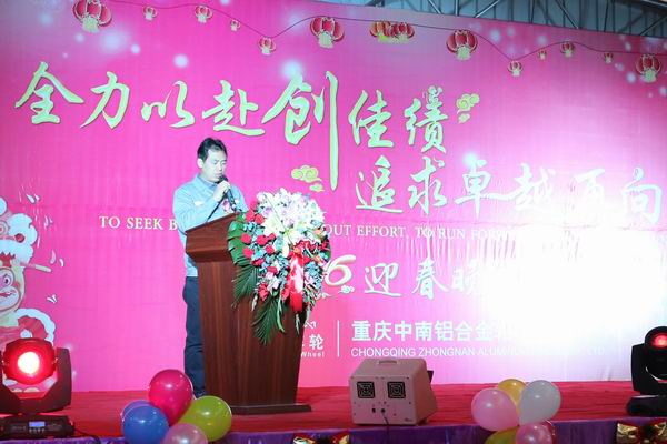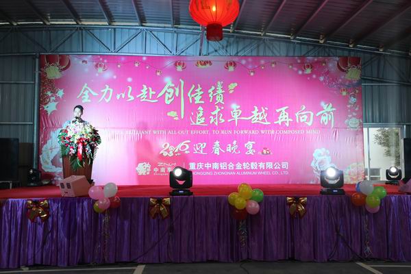 ——重庆中南铝合金轮毂有限公司2016年迎春晚宴精彩回顾 飞雪纳祥瑞,金猴踏歌来。2016年1月17日,广东高力集团旗下重庆中南铝合金轮毂有限公司张灯结彩,喜气洋洋,重庆中南全体员工欢聚一堂,共襄2016年迎春年度盛会。广东高力集团董事、副总裁梁丽聪女士、李树泉先生,中南车轮总经理陈明理先生等领导出席了本次迎春晚宴。