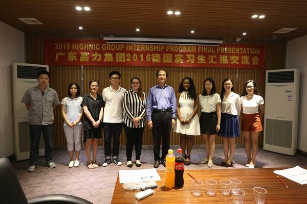 本着友好交流、互助共进的理念,7月份,我集团为两位德国大学生Justine Adzrakou和Asya Emiroglu提供为期一个月的实习岗位。上周,两位实习生圆满完成了在广东高力集团的实习。8月5日下午,我们在总部三楼会议室为她们举办了一个简约又温馨的实习汇报交流会,集团总裁梁权辉先生、副总裁梁丽聪女士出席了交流会并给两位实习生颁发了实践证明。