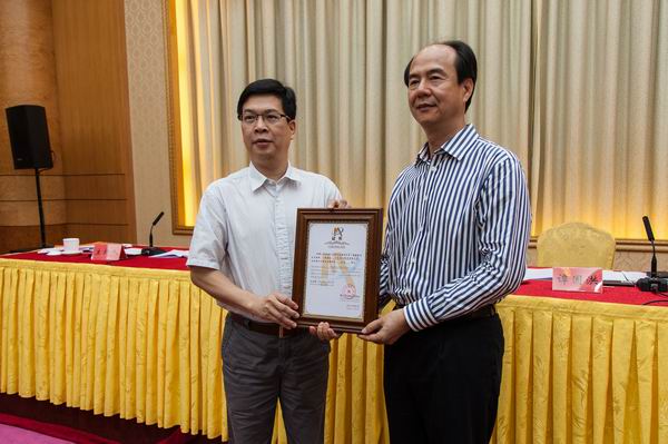 南海区工商联党组书记谭国洪为先进会员颁发荣誉奖座