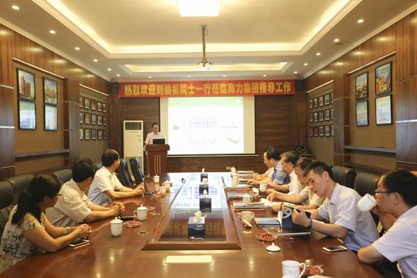 梁总裁等领导带领专家团队参观致卓环保、多正树脂的展厅 在随后的座谈会上,李树泉副总裁为来访专家团队介绍了广东高力集团的概况、科研方面的战略合作伙伴、特色研究项目以及重点推广项目等,并就高力旗下的致卓环保、多正树脂以及中南车轮所面临的生产自动化、产能产量、管理大数据等问题与专家团队进行深入探讨。刘院士不但对李总提出的问题给出了专业性的意见和建议,同时也对高力重视人才队伍建设、构建产学研一体化的发展模式表示高度赞许。