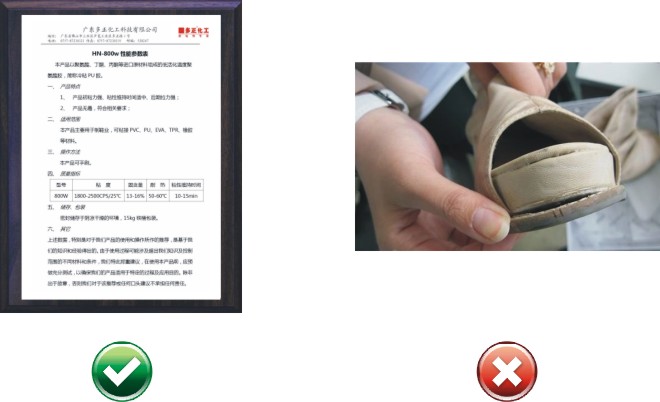 天然材料(如皮革、纸板等),以黄糊即可得到良好的粘着效果,而大部分EVA、橡胶应用药水糊来粘接,PVC、TPR由于有增塑剂的影响,为了确保后期粘着效果,最好使用PU胶。